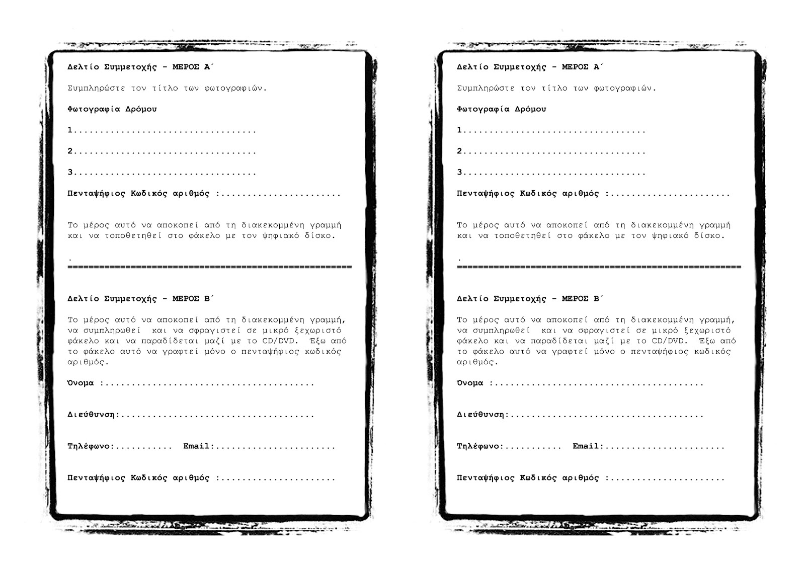 Τα CD/DVD μαζί με το Δελτίο Συμμετοχής και τη χρηματική συμμετοχή θα αποστέλλονται στη διεύθυνση: Καραισκάκη 7, 8011, Πάφος.